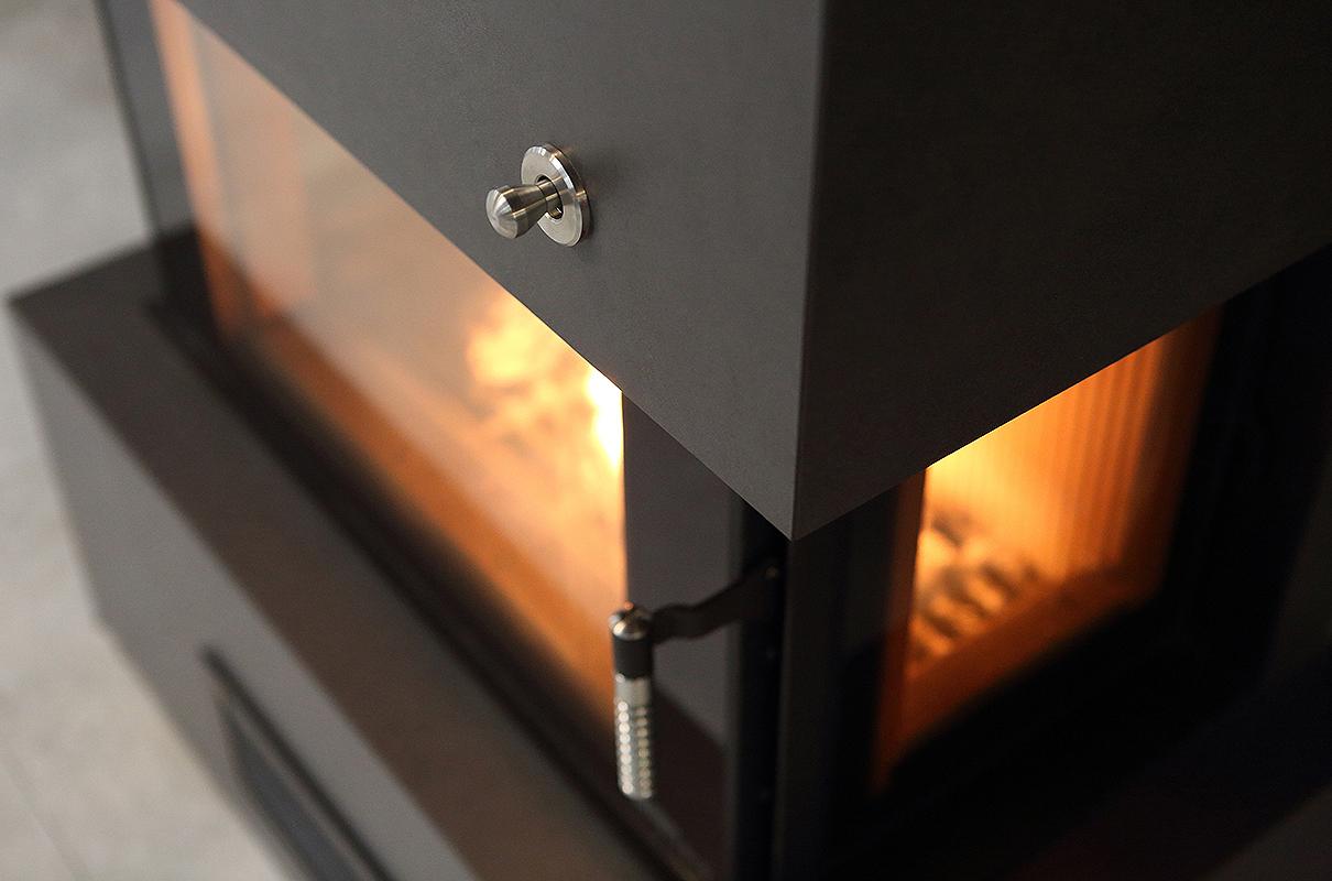 Koniec z ręcznym sterowaniem procesu spalania w twoim kominku! Kominek w standardowym wyposażeniu posiada automatyczną przepustnicę dolotu powietrza do spalania pozwalając na automatyczną regulację procesu spalania drewna.