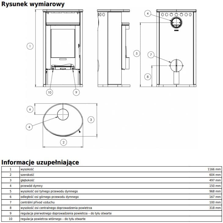 - średnica wylotu spalin: 150 mm