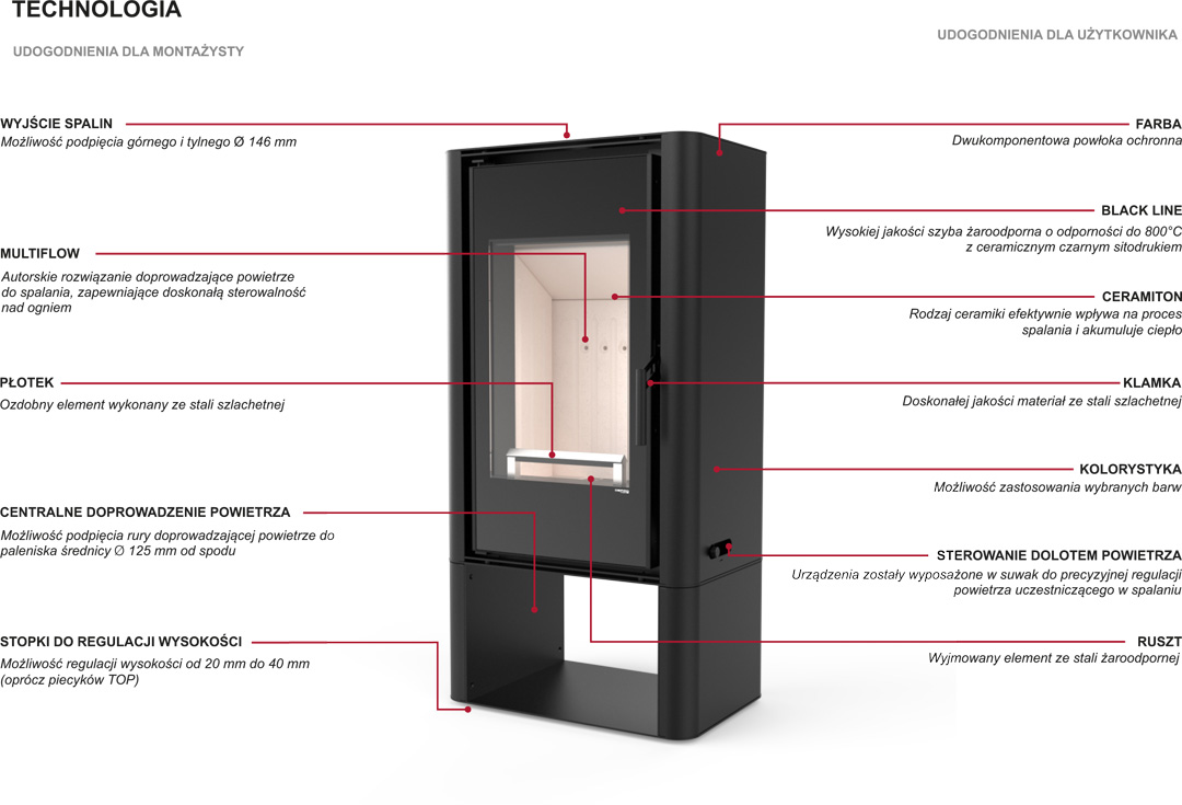 Piec wolnostojący KRATKI AMBLER Ø 150 7 kW czarne wyłożenie
