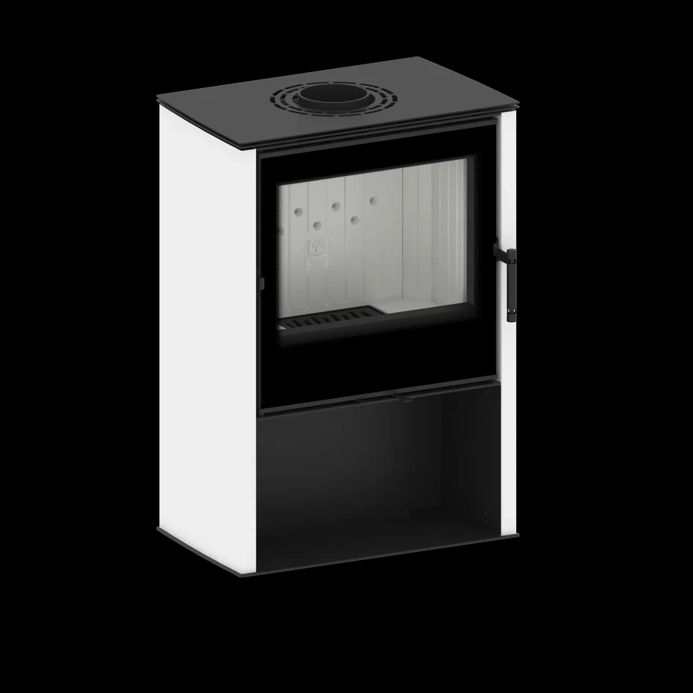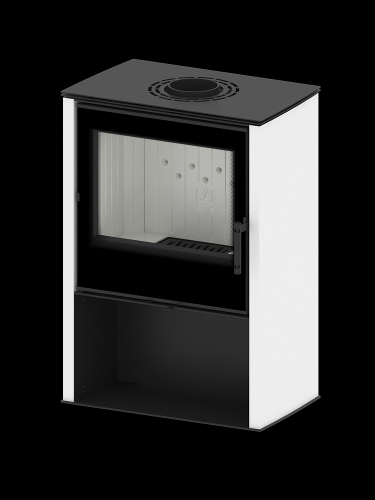 Kominek LUPO M z białymi bokami jest wyjątkowo praktyczny i wygodny w użytkowaniu. Dzięki żeliwnemu rusztowi i popielnikowi w formie szuflady, uzupełnianie opału i usuwanie popiołu jest niezwykle proste. Podwójny system sterowania powietrzem zaimplementowany w tym modelu ułatwia rozpalanie i pozwala na efektywne podtrzymanie procesu spalania przez cały czas. Ponadto piec jest wyposażony w wygodną wnękę na drewno, która umożliwia składowanie opału w obrębie bryły kominka. Górna ścianka korpusu może być wykorzystywana jako płyta grzewcza.