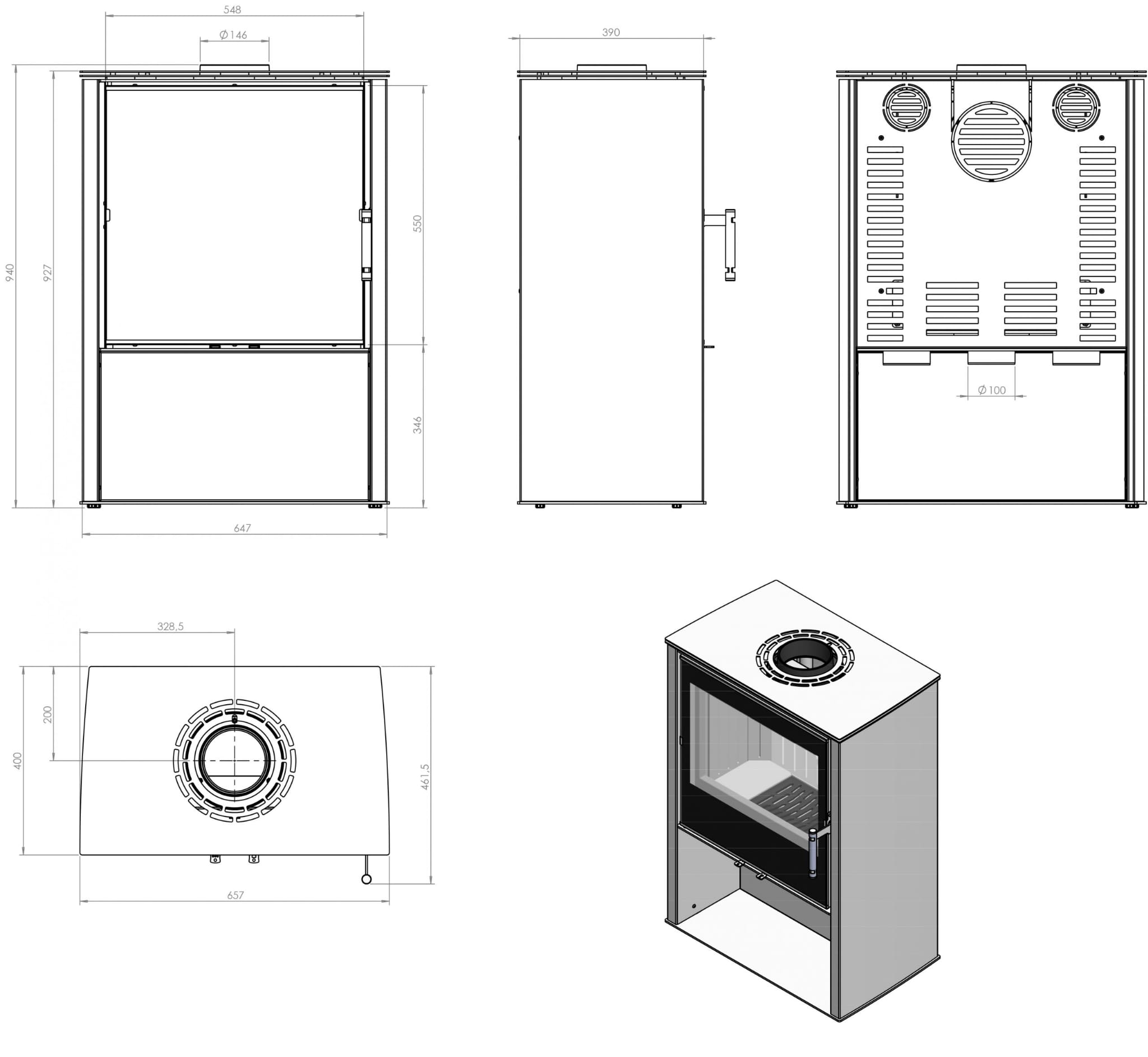 - Wyprowadzenie spalin z góry lub z tyłu pieca.
