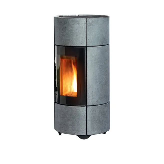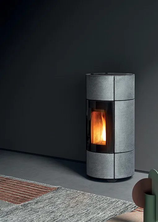 Piecyk na pellet wykonany w całości z kamienia Serpentino o minimalistycznym wyglądzie. Bez widocznych na froncie kratek. Ciepło wydostaje się przez jego górą część. Sterowany inteligentnym systemem Maestro.