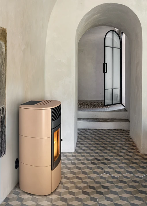 Piecyk na pellet o klasycznym wyglądzie. Wykonany ze stali i żeliwa. Kaflowe boki oraz górny panel dostępne w kilku kolorach. Sterowany inteligentnym systemem Maestro. Nowa zmiana stylizacji z 2021 r., która poprawia estetykę płomienia.