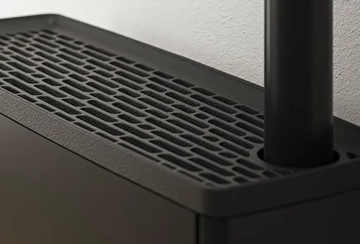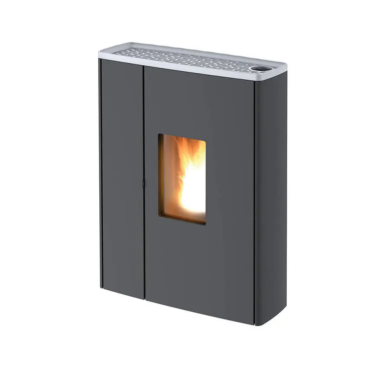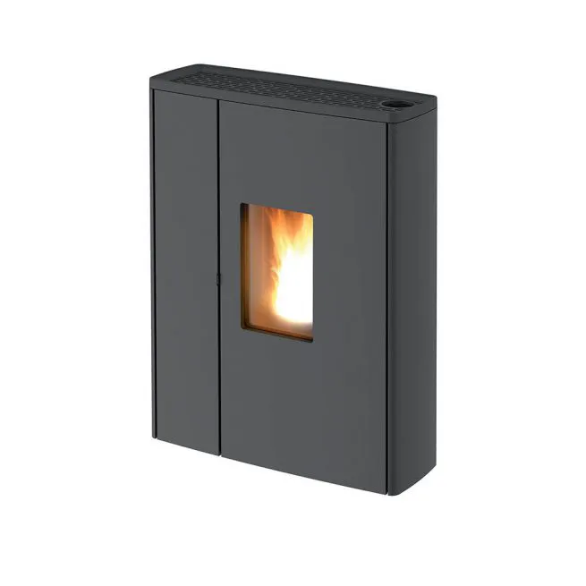 Piecyk na pellet o zmniejszonej głębokości (zaledwie 30 cm) i nowoczesnym wyglądzie. Idealny do wąskich pomieszczeń. Dzięki górnemu wyprowadzeniu spalin (wersja UP! dodatkowo płatna), można go zamontować już 5 cm od ściany z tyłu. Niezwykle prosty przód w czarnej stali z żeliwną górną pokrywą czarną lub w kolorze aluminium. Sterowany inteligentnym systemem Maestro.