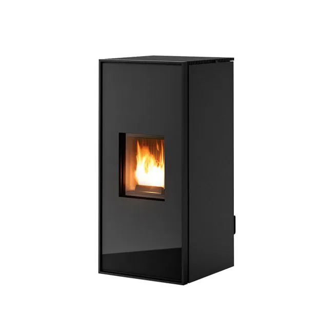 Piecyk na pellet, wykonany w stylu minimalistycznym ze szkła i stali, która zapewnia trwałość i solidność na długie lata. Z podwójnymi drzwiami. Gorące powietrze wydostaje się w górnej części piecyka poprzez stalową kratkę. Również załadunek pelletu znajduje się w górnej części, przykryty stalową czarną pokrywą. Sterowany inteligentnym systemem Maestro.