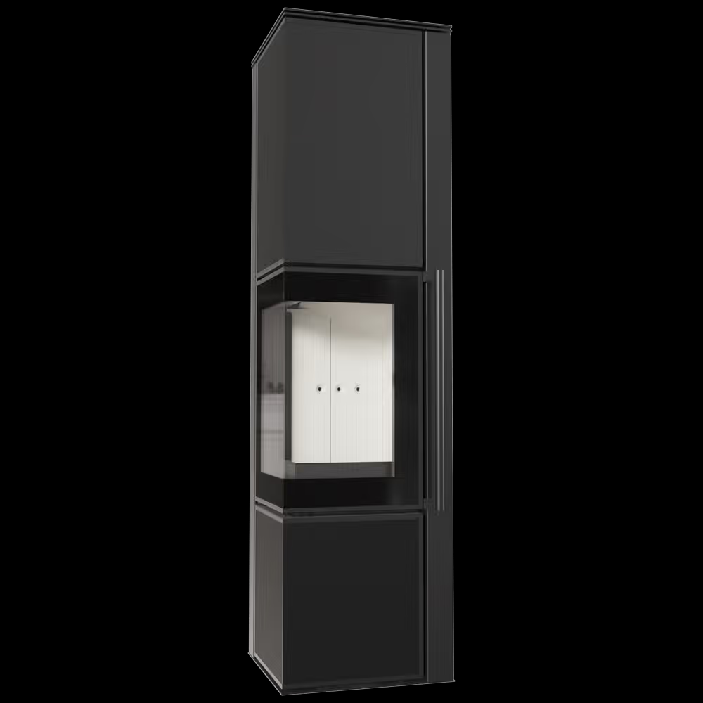 TORA to nowoczesny piec stalowy na drewno wykończony wykończony płytą ze spieku kwarcowego w eleganckim kolorze Nero Assoluto i dwustronnym przeszkleniem. Wyposażony jest w narożne drzwi ozdobione czernionym przeszkleniem celem pogłębienia wizji ognia. Piec posiada wygodny uchwyt w formie relingu do otwierania drzwi. Jest to piec, który oferuje wygodę i bezpieczeństwo użytkowania, przy jednoczesnym nowoczesnym designie.