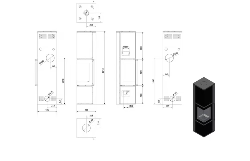 Piec wolnostojący KRATKI AMBLER Ø 150 7 kW czarne wyłożenie