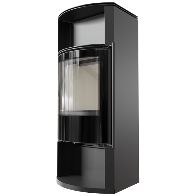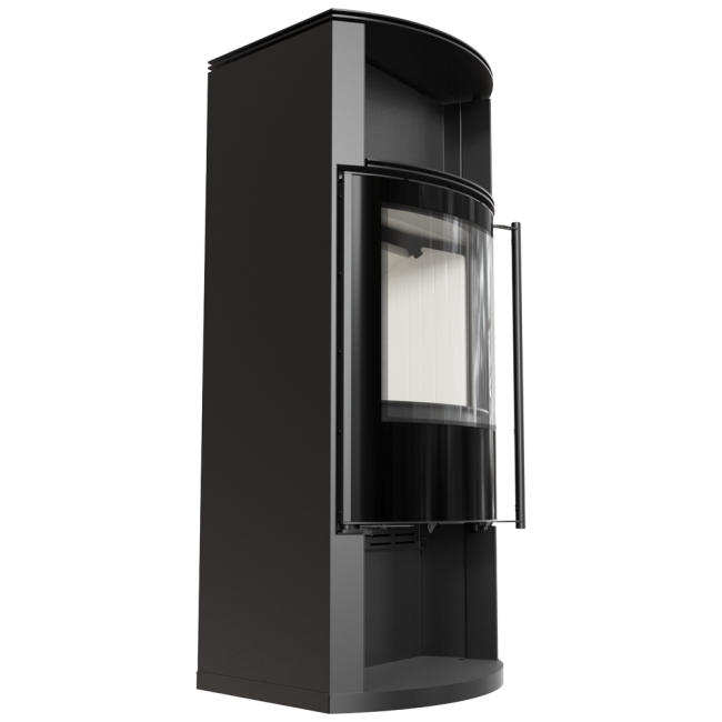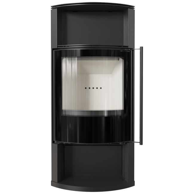 Uwydatnione piękno ognia dzięki zaokrąglonej szybie.