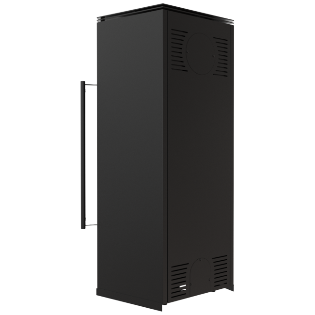 Wbudowany dolot powietrza z zewnątrz fi 100, który zapewnia doprowadzenie świeżego powietrza do paleniska z zewnątrz budynku, co wpływa na lepsze spalanie i większy komfort użytkowania.