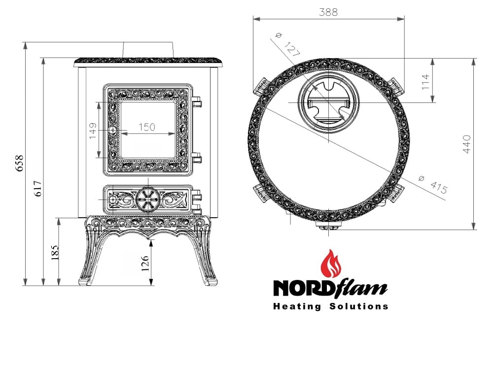 Piec wykonany jest z wysokiej jakości żeliwa, które charakteryzuje się dobrą trwałością i wytrzymałością mechaniczną, co sprawi, że kominek posłuży przez długie lata. Żeliwo cechuje się wysokim współczynnikiem przekazywania ciepła, dlatego piecyk posiada bardzo wysoką wydajność energetyczną. Kompaktowe wymiary sprawiają, że pasuje do każdego wnętrza.