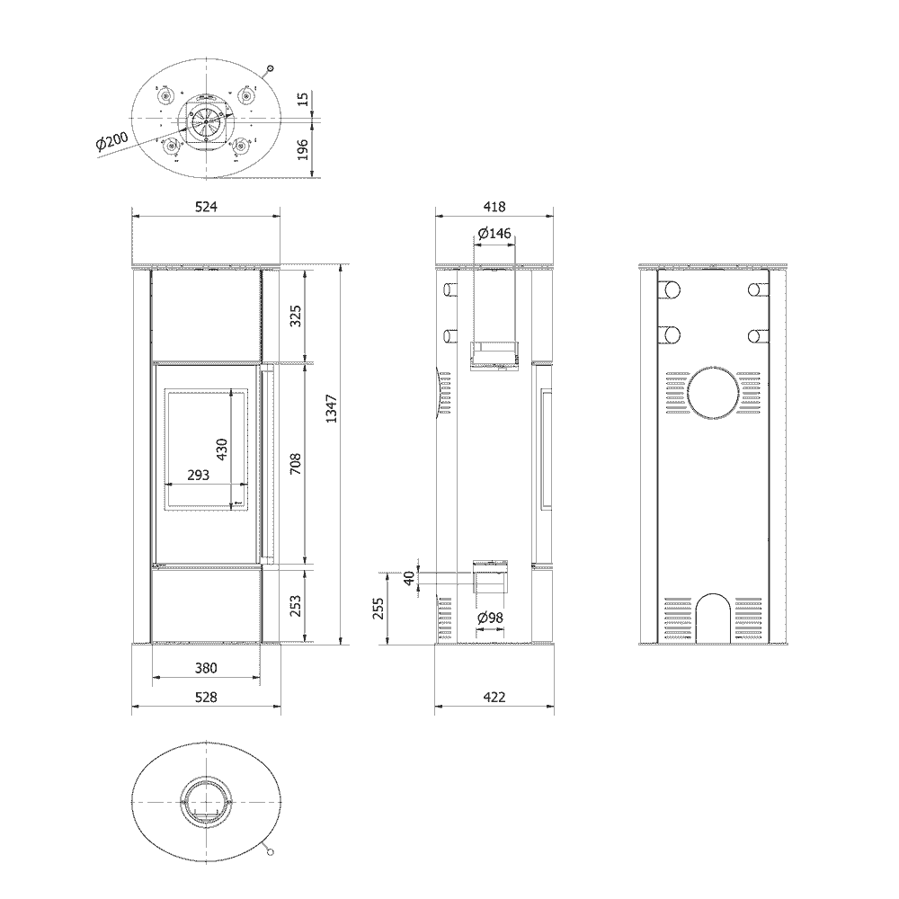 - ułatwiony montaż pieca dzięki otworowi w podstawie - Ø200mm,