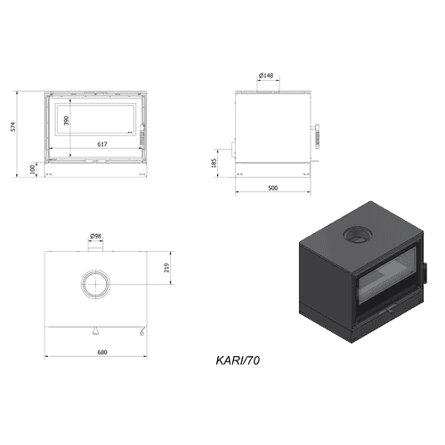 Piec stalowy KARI 70 Ø 150 8 kW kominek w zabudowie