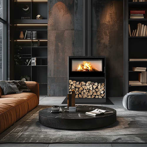 KARI 95 z wnęką na drewno to wyjątkowe rozwiązanie grzewcze, które łączy zalety kasety kominkowej z nowoczesnością i funkcjonalnością, idealnie sprawdzając się w dużych przestrzeniach. Wyróżnia się wnęką na drewno, która nie tylko ułatwia przechowywanie opału, ale również dodaje wnętrzu przytulności i charakteru