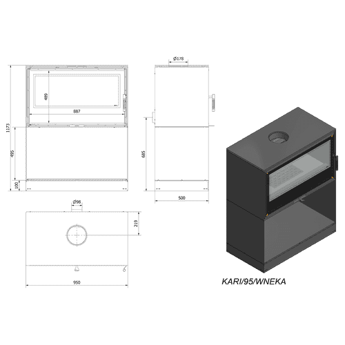 Piec stalowy KARI 95 Ø 180 14 kW kominek w zabudowie wnęka na drewno