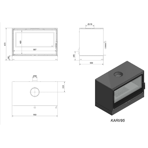 Piec stalowy KARI 95 Ø 180 14 kW kominek w zabudowie