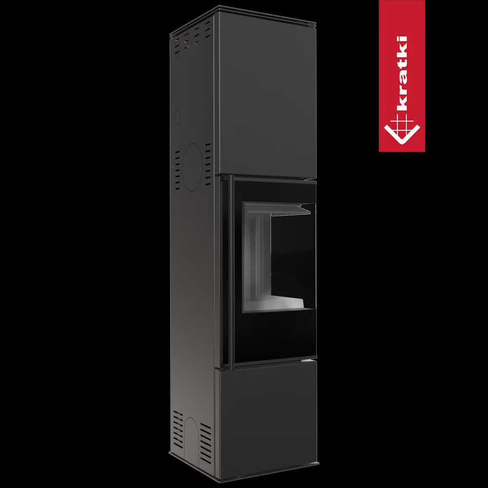 Piec stalowy KRATKI REN/L prawy Ø 150 7 kW czarne wyłożenie z domykaniem