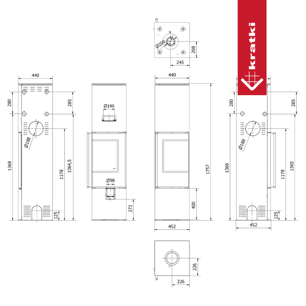 - ułatwiony montaż pieca dzięki otworowi w podstawie - Ø200mm,