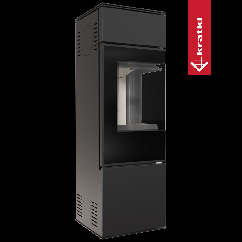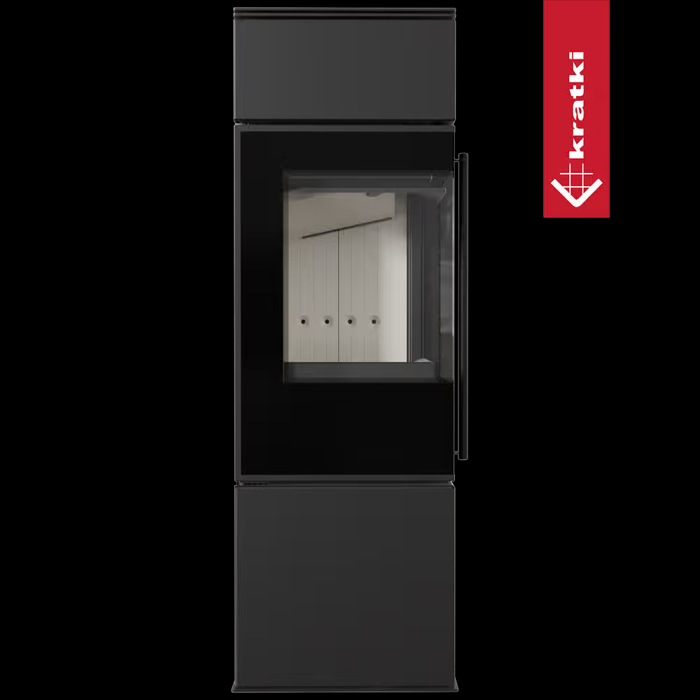 - dekoracyjna szyba typu GLASS z estetycznym czarnym dekorem nadaje piecu elegancki wygląd,