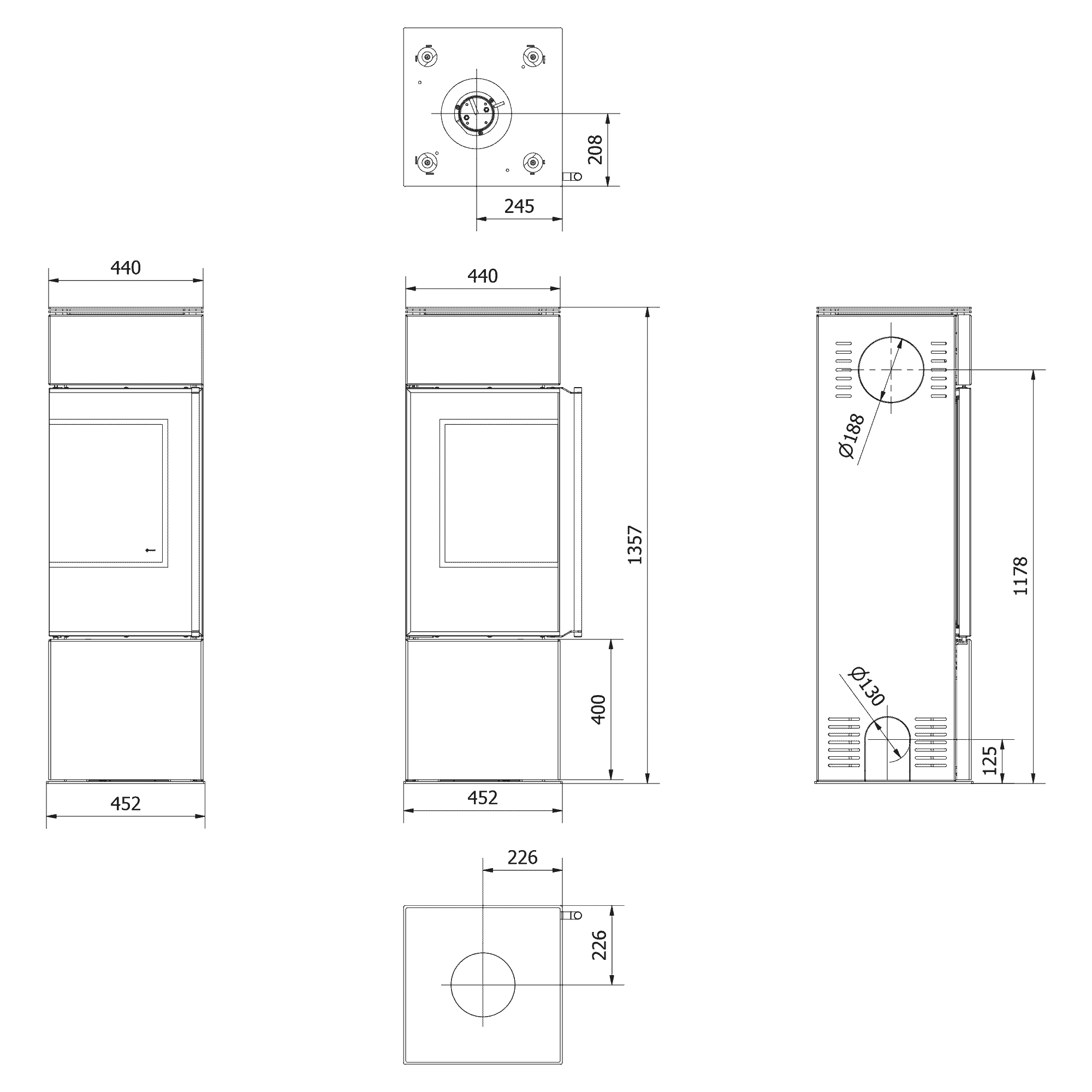 - ułatwiony montaż pieca dzięki otworowi w podstawie - Ø200mm,
