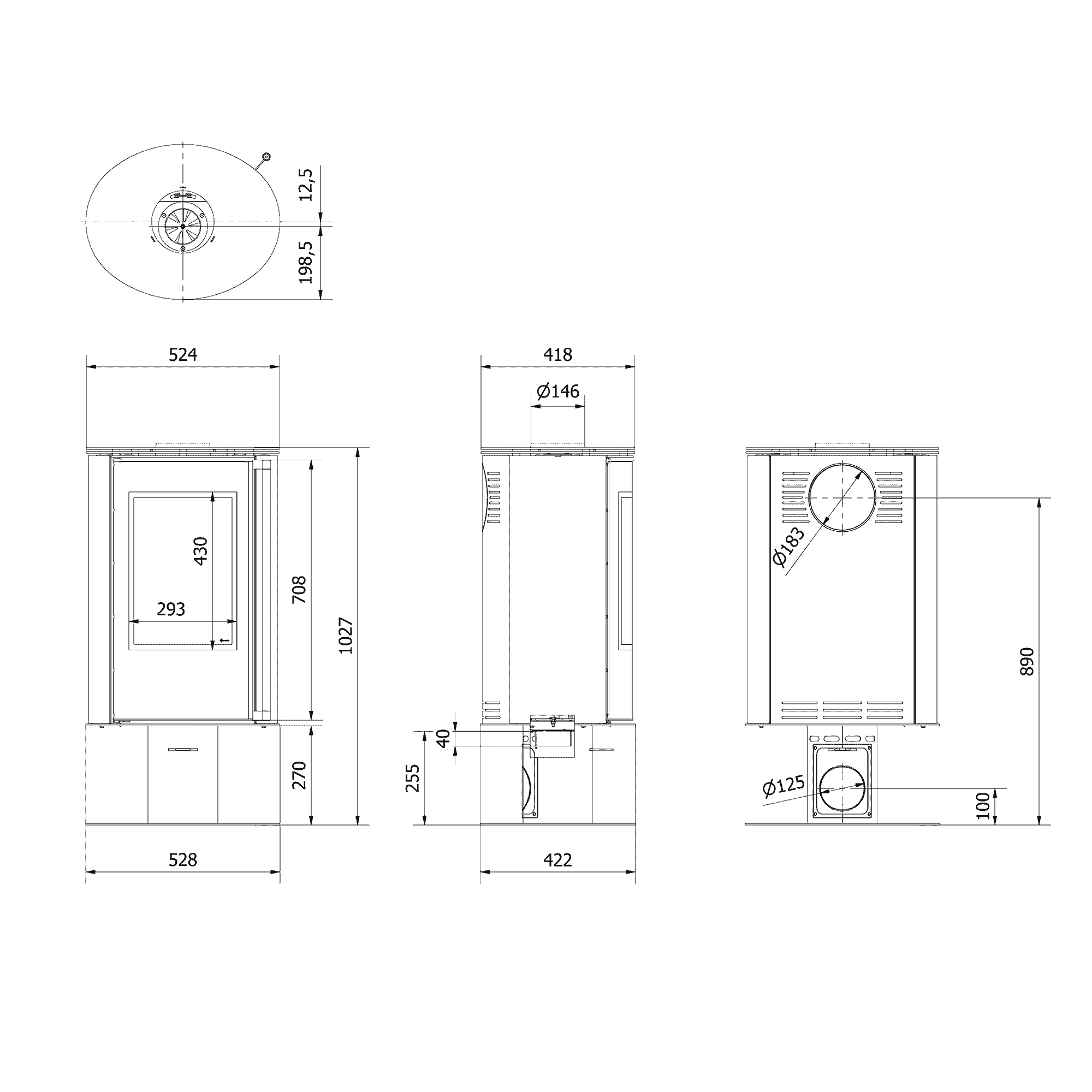 Piec stalowy na nodze KRATKI ERIK Ø 150 5,5 kW czarne wyłożenie