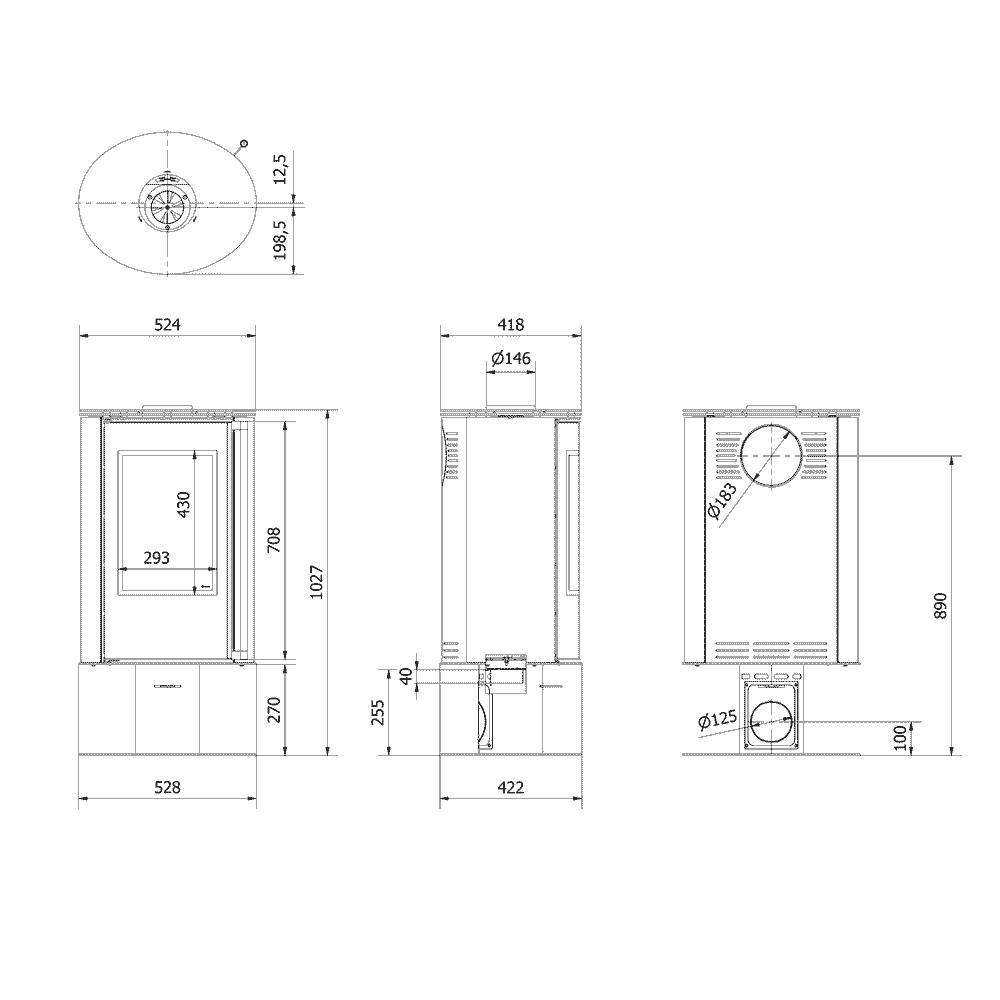 Piec stalowy na nodze KRATKI ERIK Ø 150 5,5 kW z domykaniem