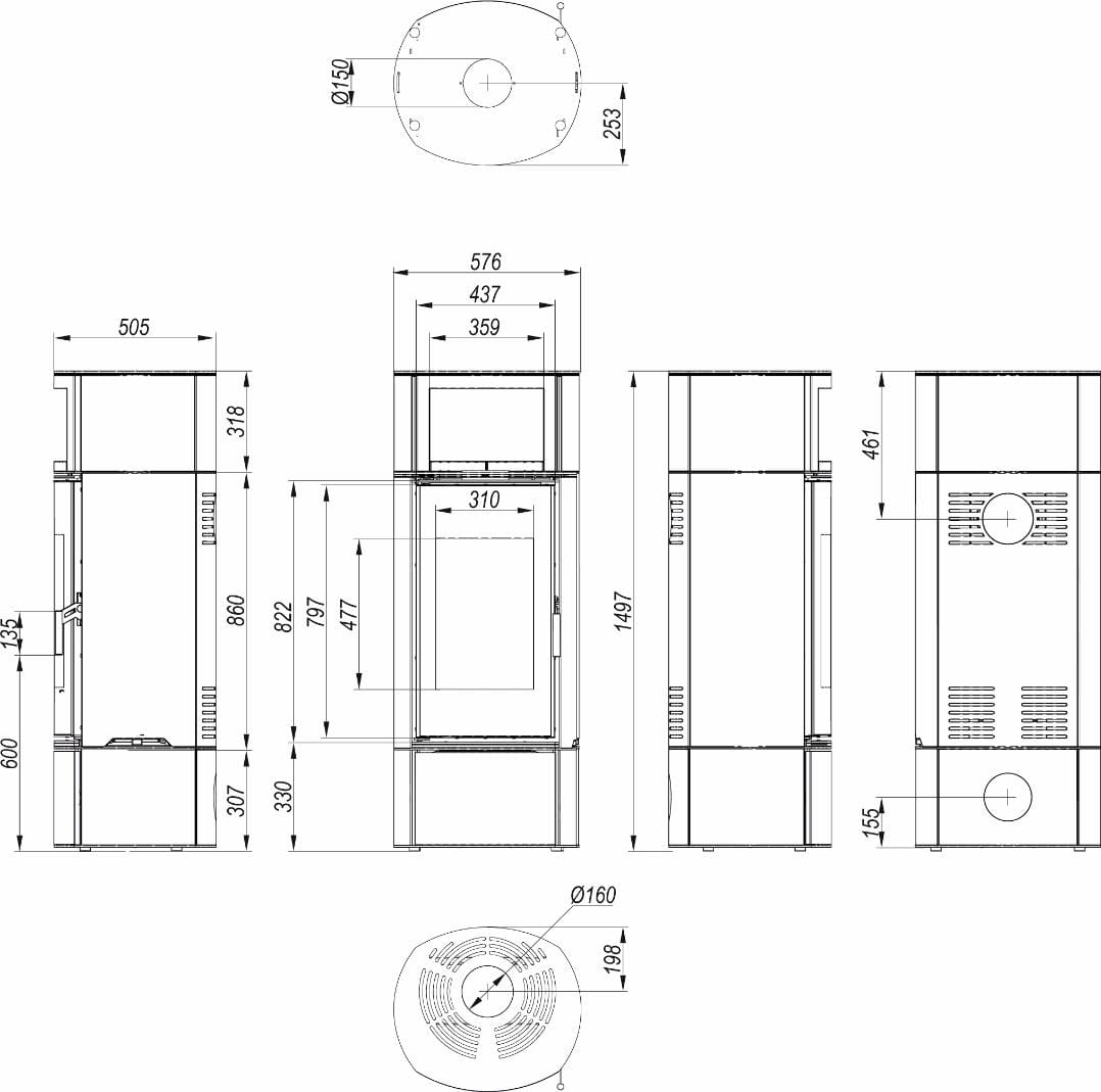 Piec wolnostojący KRATKI AMBLER Ø 150 7 kW czarne wyłożenie