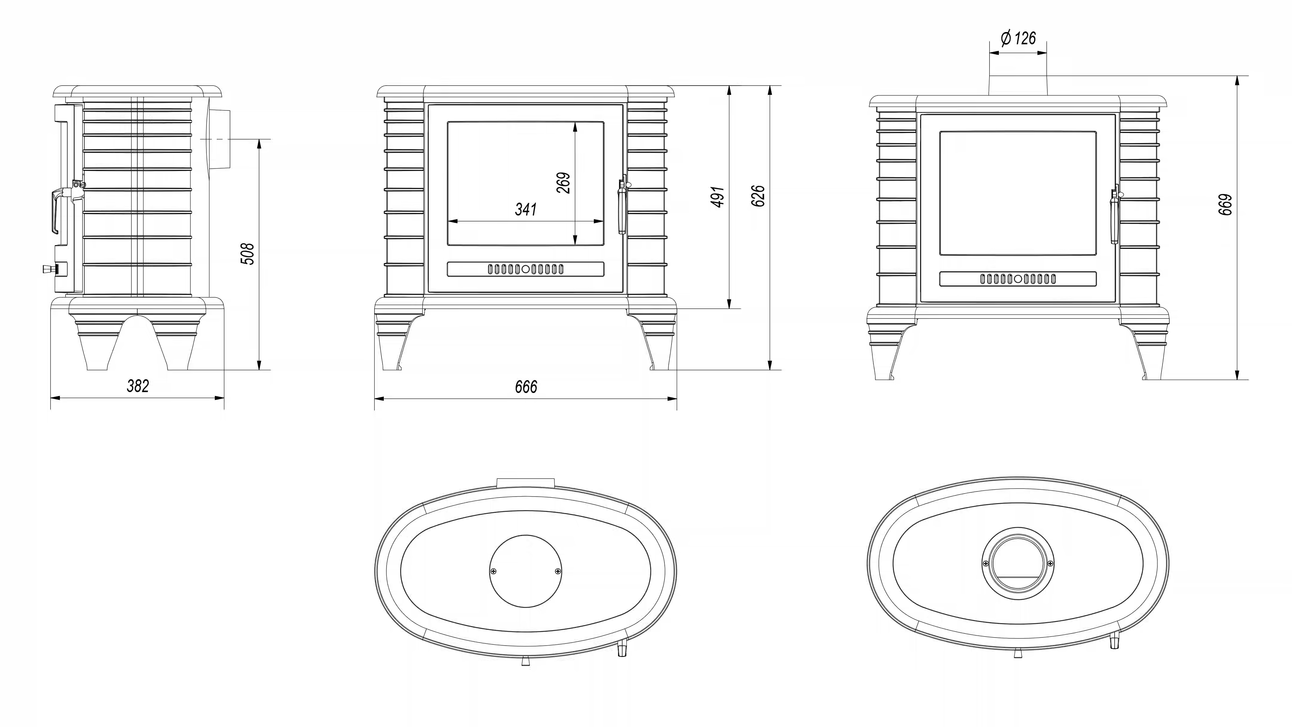 - Posiada szybę żaroodporną wytrzymującą temperaturę do 660°C.
