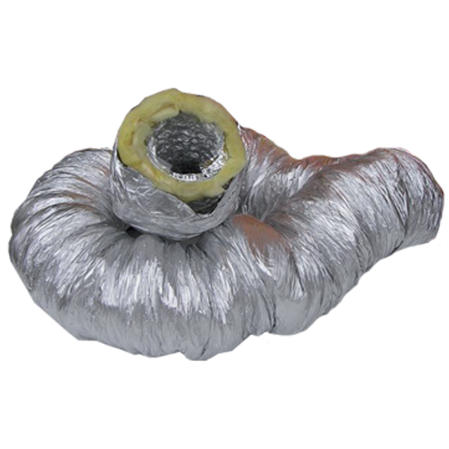 Przewód elastyczny izolowany termicznie i akustycznie, dzięki odporności temperaturowej do +250°C i niepalności, przeznaczony jest do transportu gorącego powietrza, np. w systemach DGP. Perforacja przewodu wewnętrznego redukuje hałas powstający w instalacji oraz tłumi jej drgania.