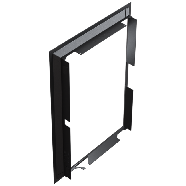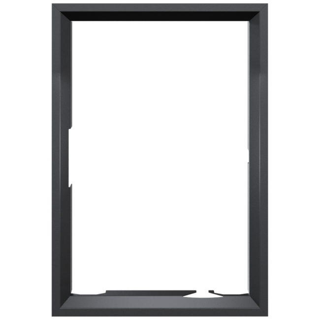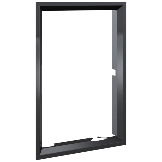 Nowoczesna stalowa ramka ozdobna do wkładu kominkowego NADIA 9 z prostym frontem oraz drzwiami otwieranymi prawostronnie (zawiasy po prawej stronie) po przełożeniu drzwi. Jej główną zaletą jest łatwy i szybki montaż. Instalację ramki można wykonać samemu, bez użycia dodatkowych narzędzi.