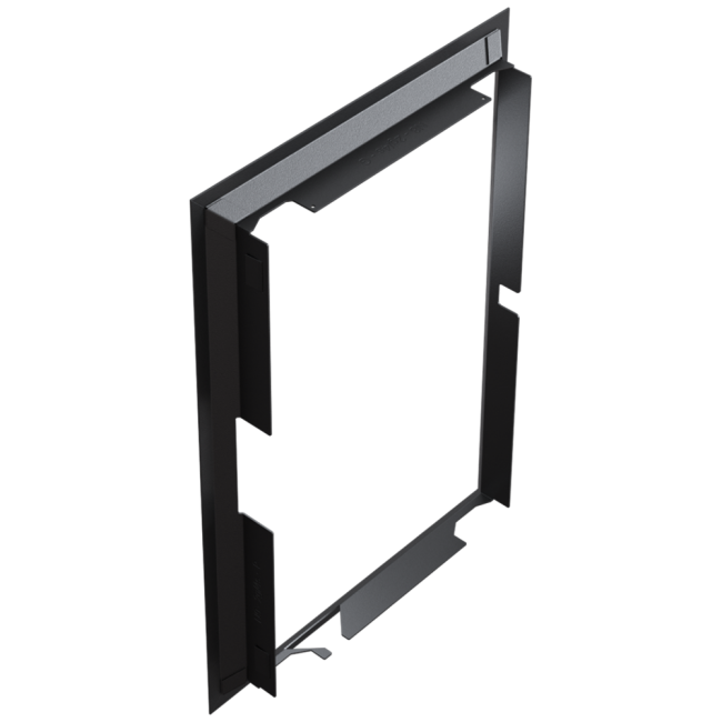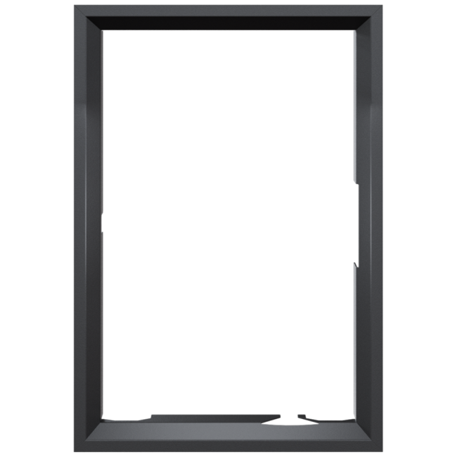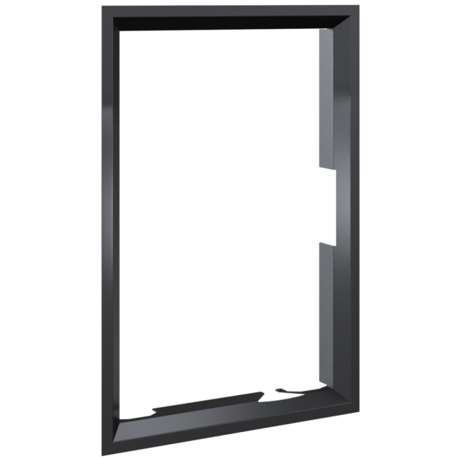 Nowoczesna stalowa ramka ozdobna do wkładu kominkowego NADIA 9 z prostym frontem oraz drzwiami otwieranymi lewostronnie (standard).