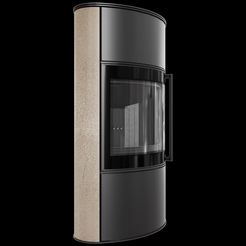 Stalowy piec wolnostojący BJORN Ø 150 7kW Wysoka ozdobna ceramika akumulacyjna GOLD SATIN; pokrywa stalowa; czarny termotec