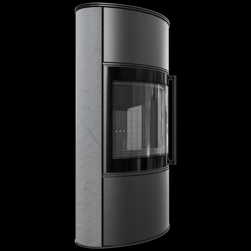 Stalowy piec wolnostojący BJORN Ø 150 7kW Wysoka ozdobna ceramika akumulacyjna GRAY SATIN; pokrywa stalowa; czarny termotec; z domykaniem