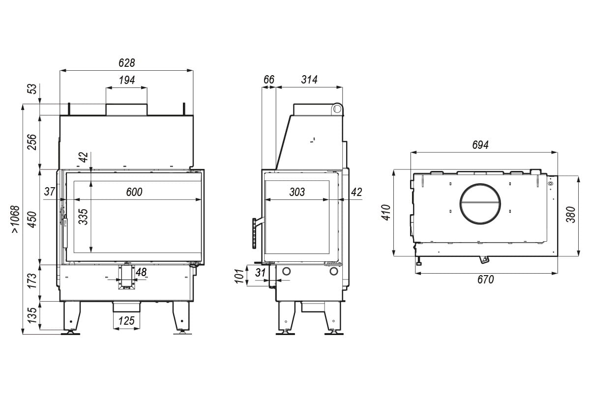 Poprzez odpowiednio wyprofilowane drzwiczki i czarną ramę sprawdza się w nowoczesnych aranżacjach, a stalowy korpus pozwala na montaż w różnych obudowach wkładu. Dodatkowo system dystrybucji gorącego powietrza (DGP) może rozprowadzać ciepło do pomieszczeń oddalonych od kominka, poprawiając komfort całej rodziny.