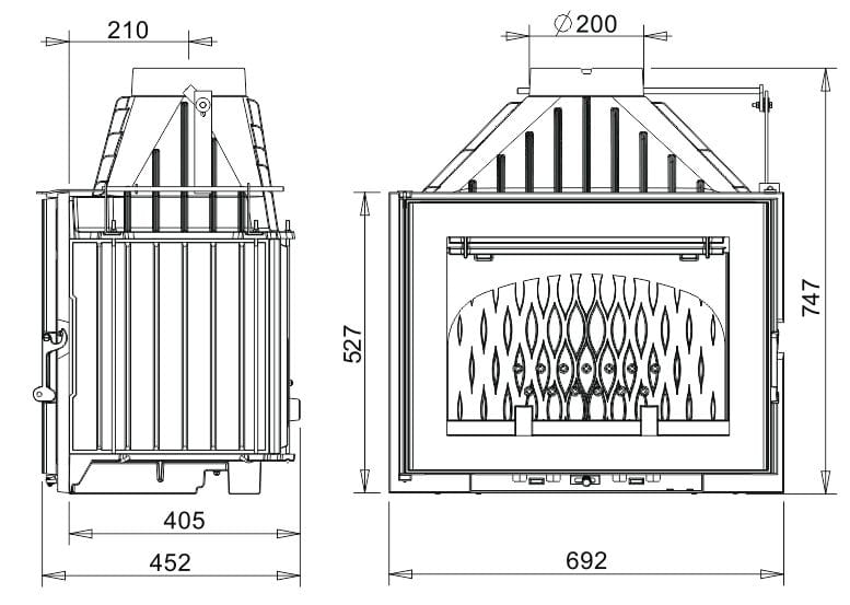 Wkład kominkowy INVICTA 700 GRAND ANGLE ECO z szybrem, doprowadzenie powietrza