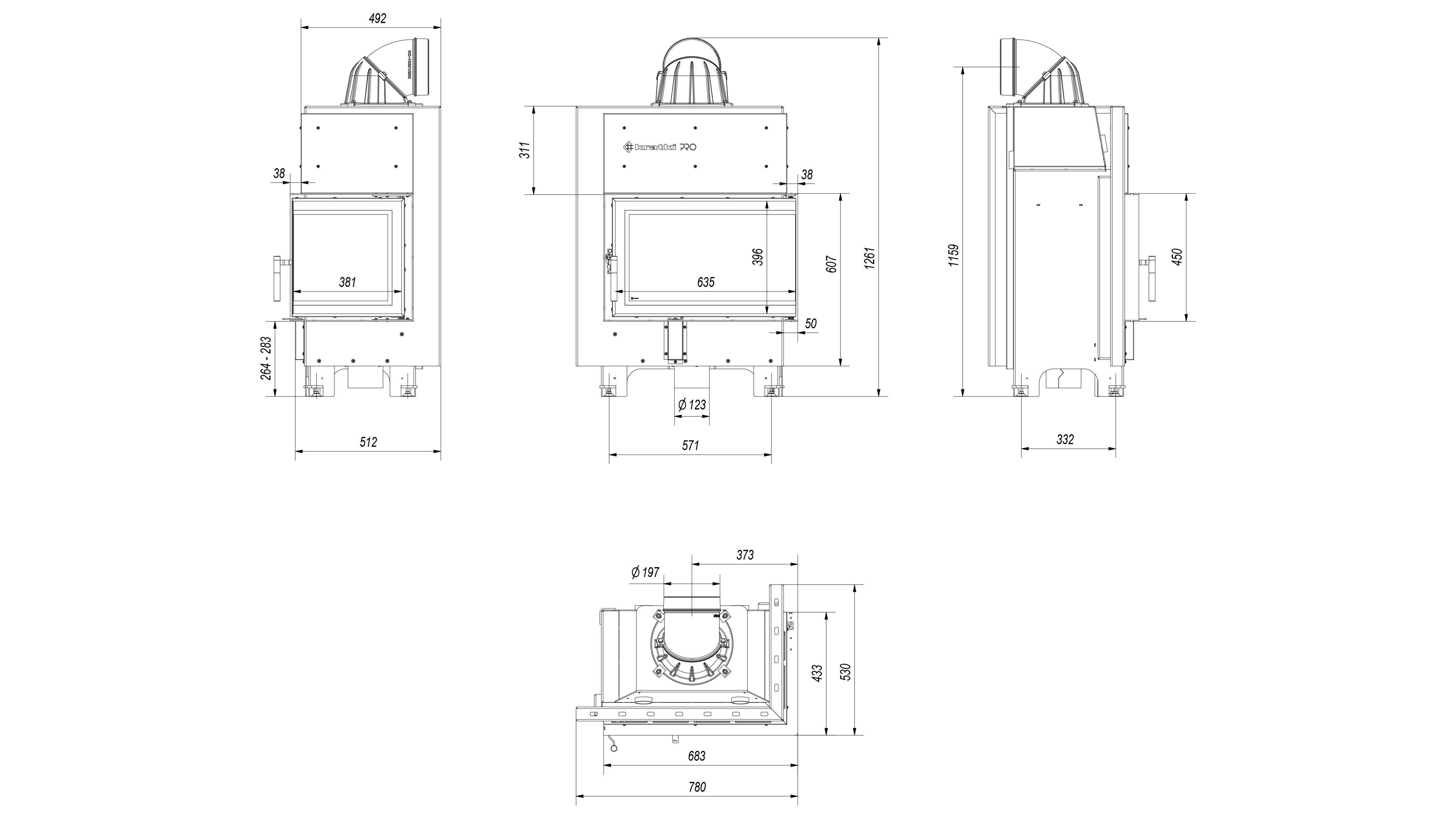 Wykonany z wysoko gatunkowej stali korpus i front odporny na działanie bardzo wysokich temperatur.