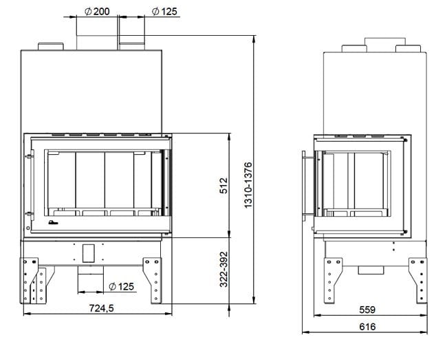 - dystrybutor gorącego powietrza: 4 x Ø125 mm