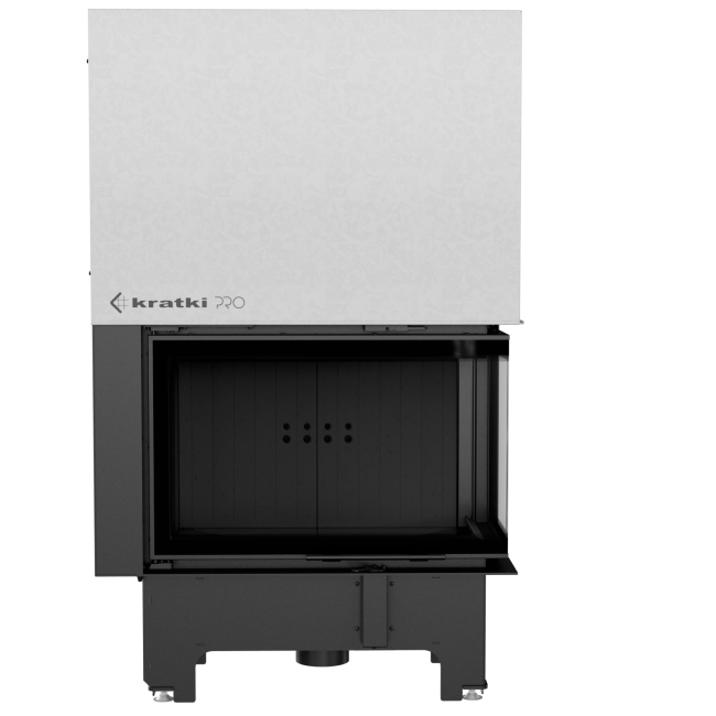 W kominku zastosowano specjalnie profilowaną płytę dolną wykonaną z czarnego TERMOTEC, dzięki czemu komora spalania jest głębsza i mieści w sobie większą ilość drewna. Utrzymanie wkładu w czystości jest łatwiejsze dzięki zamontowanemu rusztowi oraz pojemnikowi, w którym gromadzi się popiół.