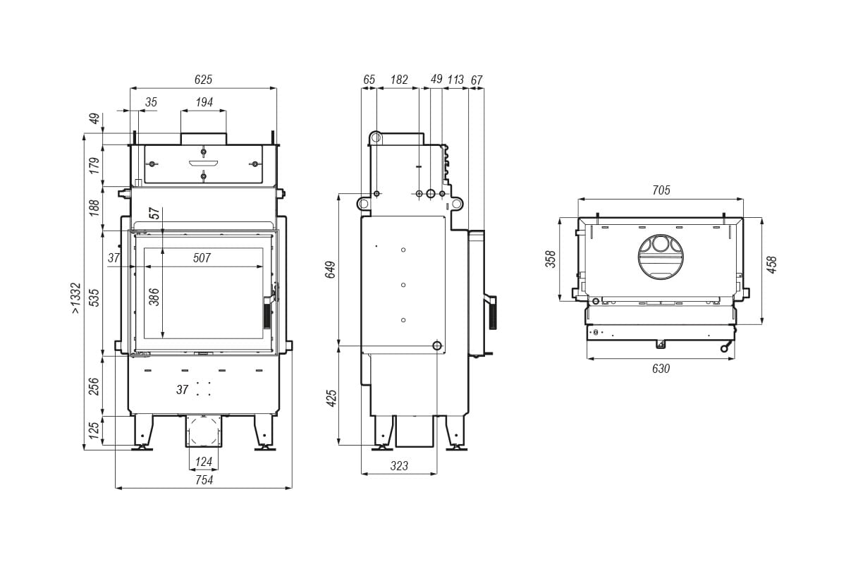 Proces spalania odbywa się na trwałym ruszcie wykonanym ze stali kotłowej o grubości 5 mm, znanej z wysokiej odporności na temperaturę i obciążenia mechaniczne. Ruszt umieszczono na dnie komory, a pod nim znajduje się wyjmowany pojemnik na popiół, co ułatwia czyszczenie i konserwację wkładu.