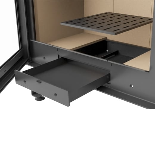 Popielnik pozwala szybko i wygodnie pozbyć się popiołu. Demontowane części paleniska pozwalają na prace konserwacyjne bez konieczności demontażu paleniska.