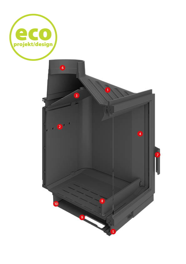 Możliwość wyposażenia w bezpośredni wlot powietrza do spalania do paleniska (wyposażenie opcjonalne), gwarantuje prawidłowe funkcjonowanie w nowoczesnych, energooszczędnych domach. Wyposażenie standardowe we wkładach ECO iLUX 90 oraz ECO iLUX 90 L/R.