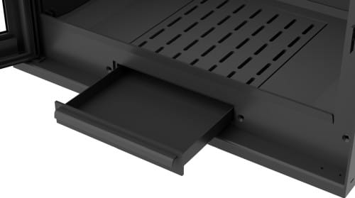 Popielnik pozwala szybko i wygodnie pozbyć się popiołu. Demontowane części paleniska pozwalają na prace konserwacyjne bez konieczności demontażu paleniska
