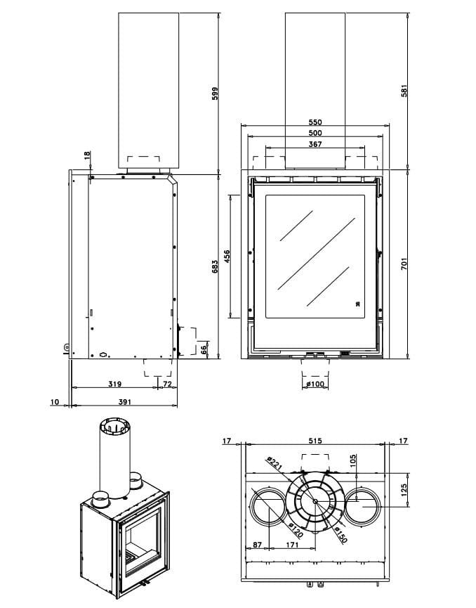 Wkłady są przeznaczone do umieszczania w istniejących lub nowo budowanych otwartych kominkach. Dzięki systemowi wymuszonych wentylatorów powietrze krąży w sposób optymalizujący dystrybucję ciepła, osiągając w ten sposób doskonałą wydajność i idealną temperaturę na większej powierzchni.
