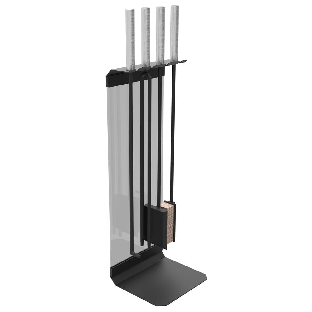 Zestaw praktycznych narzędzi kominkowych S4 zaprojektowany został w nowoczesnej stylistyce. Wykonano go ze stali lakierowanej proszkowo na kolor czarny matowy oraz szkła. W skład zestawu wchodzą: stalowo-szklany stojak, szczotka, pogrzebacz, szufelka oraz szczypce. Wspornik na narzędzia wykonano z hartowanego szkła. Pomaga utrzymać kominek w czystości oraz stanowi oryginalny element wystroju wnętrza.